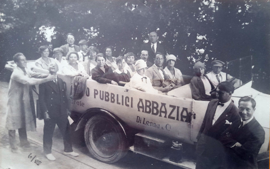 Nessun esule del Villaggio Giuliano possedeva un’automobile, ma fu possibile da subito organizzare gite grazie all’impresa di corriere gestita da Alfredo Di Lenna, esule da Abbazia. Si trattava in realtà del riavvio di una attività già esistente in Istria, dove il padre Ottorino gestiva la linea pubblica Fiume-Trieste (vedi foto accanto, risalente agli Anni ’20).