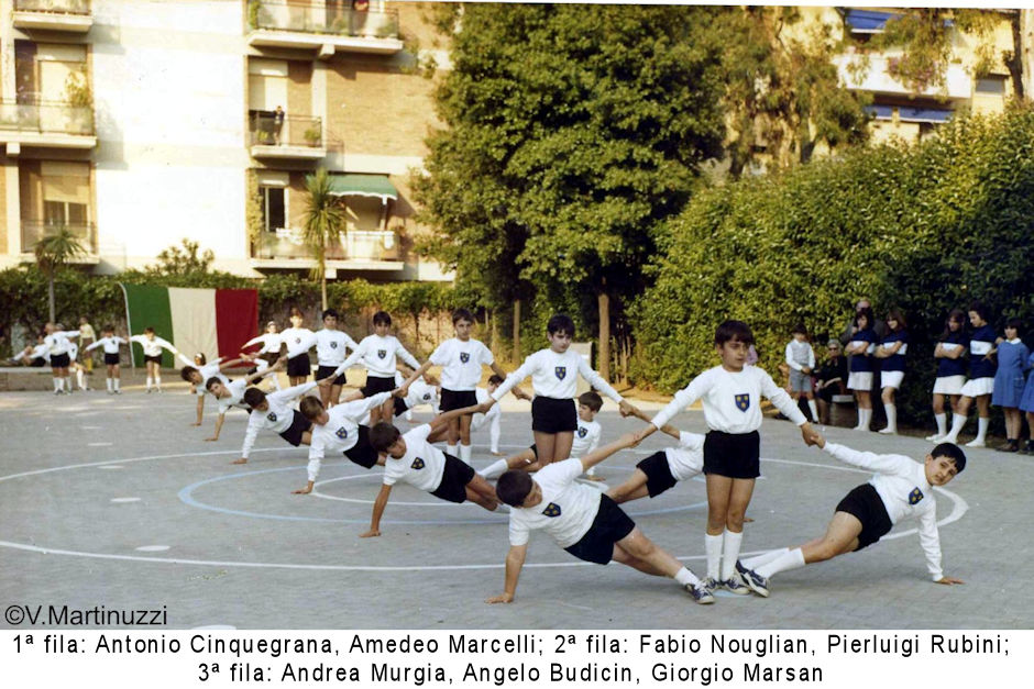 Tutti gli anni, il prof. Battara organizzava il saggio finale di ginnastica dei bambini e dei ragazzi; il saggio si teneva nel campo sportivo della Casa della Bambina, alla presenza sempre di un folto pubblico. Queste foto si riferiscono al saggio del 1970: