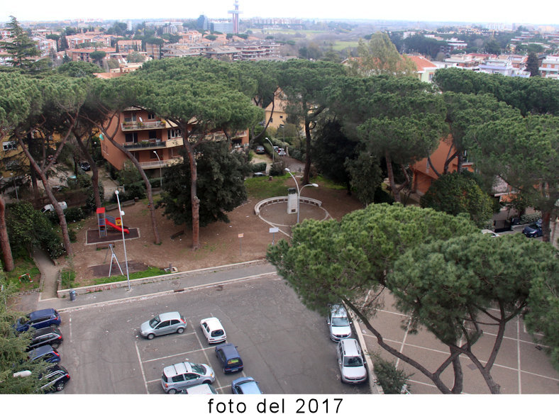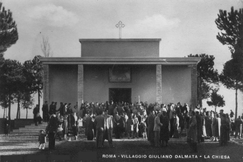 L’unica cosa identica ad oggi erano i giardini che contornavano la vecchia chiesetta con i pini piantati all’epoca del Villaggio Operaio dell’E42.