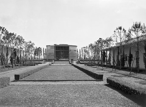 Al Villaggio Operaio dell’E42 era presente una piccola cappella per le necessità religiose degli operai, costruita nel maggio 1940. Dopo l’abbandono dei lavori e l’occupazione delle truppe americane, la cappella era stata usata come deposito e officina meccanica e versava in pessime condizioni.