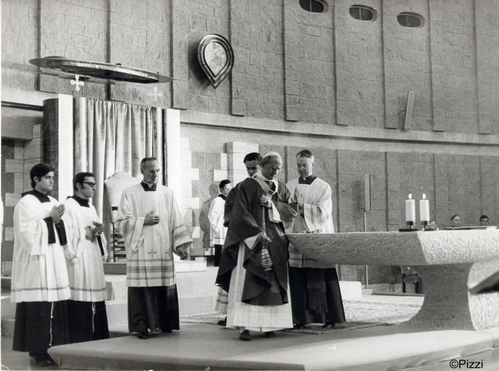 La consacrazione avvenne il 4 dicembre 1949 da parte di Mons. Traglia, alla presenza del vicepresidente dell’Opera Profughi Ciampani e del presidente dell’A.N.V.G.D. padre Orlini. Nell’occasione, 30 bambini ricevettero la Prima Comunione e la Cresima (all’epoca si faceva tutto lo stesso giorno).