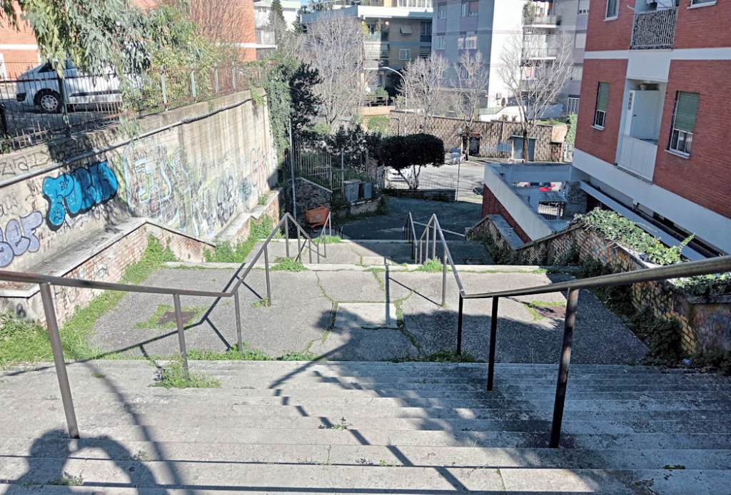Via dei Granatieri finisce con una scalinata piuttosto larga (ma non molto curata) che conduce alla sottostante Via Canzone del Piave. La scala ha un muraglione di contenimento sulla sinistra (spesso con pessimi graffiti) e una palazzina sulla destra.
