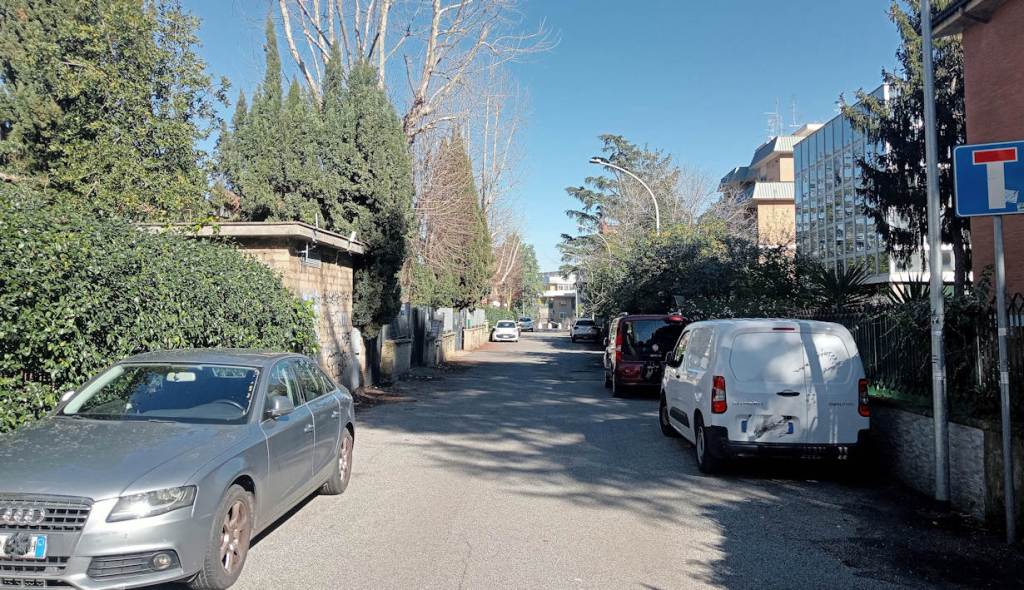 La strada prosegue in discesa con un paio di piccoli esercizi commerciali e due palazzine residenziali sulla destra, mentre sulla sinistra si trova il muraglione di contenimento delle retro delle palazzine che hanno gli ingressi su Viale Sinigaglia e Via F.lli Reiss Romoli.