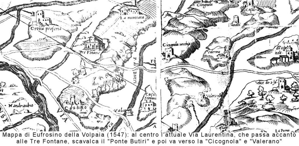 Come dice il nome, “Laurentina” perché conduce a Laurentum (l’attuale Pratica di Mare): la strada partiva dall’Ostiense e seguiva in parte il percorso della moderna Via di Decima e poi della Pontina e di Via di Pratica (vedi foto)