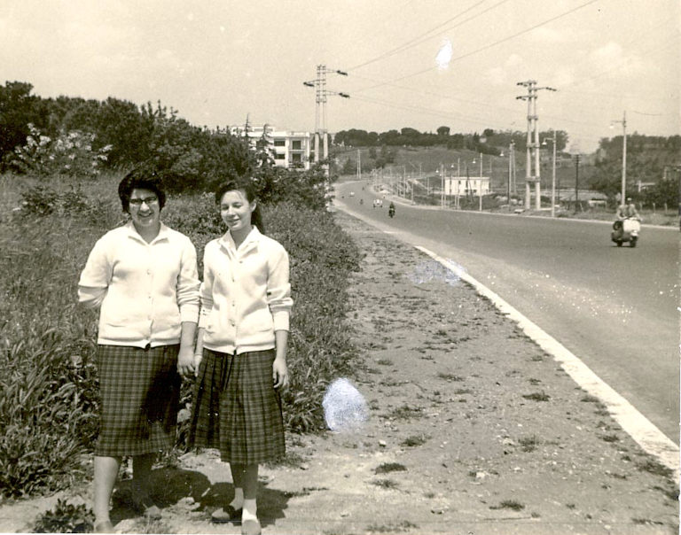 All’epoca la Laurentina era uno stradone largo senza spartitraffico (come si vede nella foto del 1958 con le sorelle Hagendorfer):
