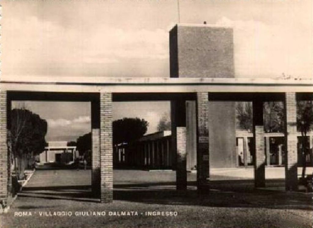L’ingresso al Villaggio avveniva dalla Via Laurentina attraverso degli archi in travertino che riportavano la scritta “Esposizione Universale 1942 Villaggio Operaio”. La cancellata originaria era già stata eliminata negli Anni ’40. Tutto il Villaggio corrispondeva al civico 639 della Via Laurentina e le buchette della posta erano tutte poste all’esterno (anni dopo, il postino di quartiere, Antonio, ricordava come fosse complicato cercare le singole persone in tutto l’insieme delle buche).