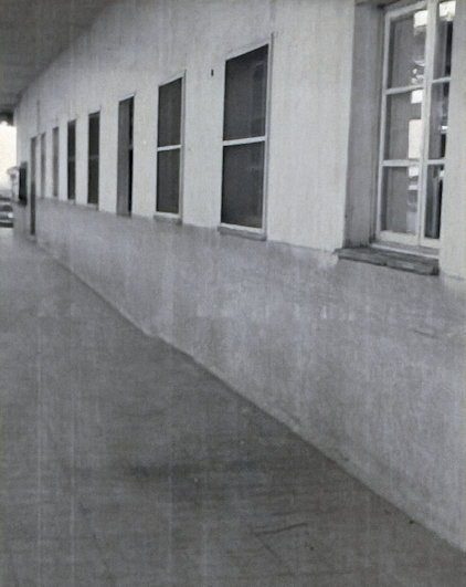 Queste due foto mostrano il corridoio esterno e quello interno dei padiglioni, dove si affacciavano le porte dei mini-appartamenti.