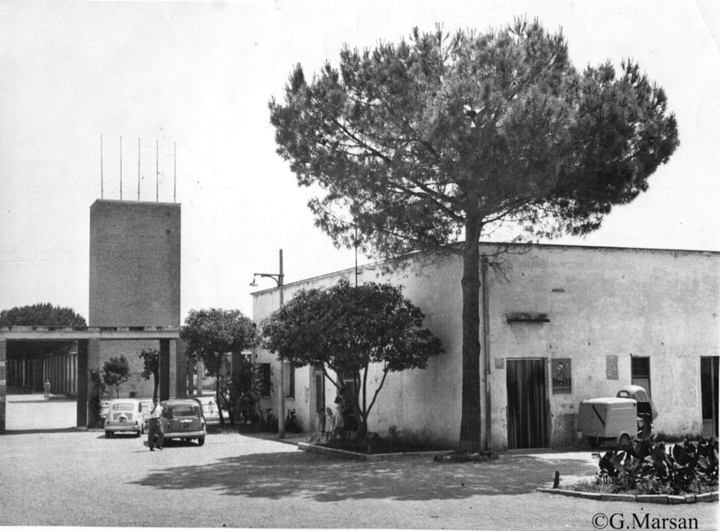 Questa foto è stata scattata dal tetto della torre dell’acqua e mostra molto bene i padiglioni, mostrando chiaramente le due ali laterali che si allungano sul retro, dove nei primi anni gli esuli avevano realizzato piccoli orti.