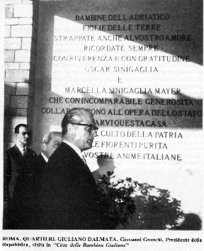 Durante la visita il presidente Gronchi, accompagnato dal Segretario Generale Moccia e dal Consigliere Militare gen. Rota, visitò anche la Casa della Bambina Giuliano-Dalmata, già attiva da alcuni anni.